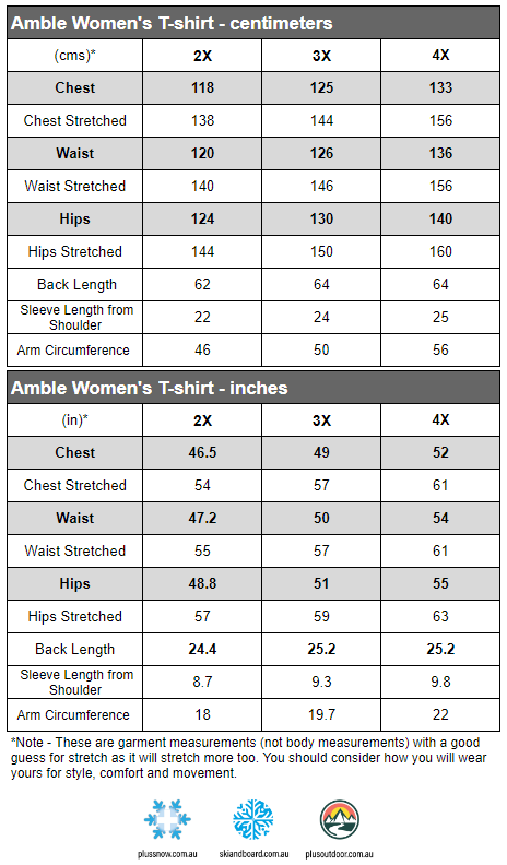 Size chart for Amble Campground Women's Plus Size T-Shirt Coast Size 3XL