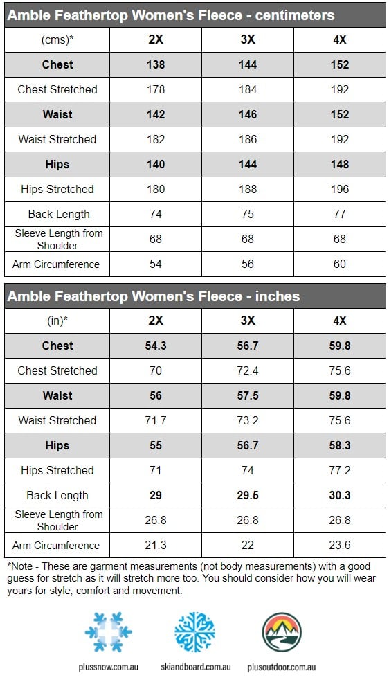 Size chart for CLEARANCE - Amble Feathertop Women’s Fleece Terracotta Plus Size 4XL