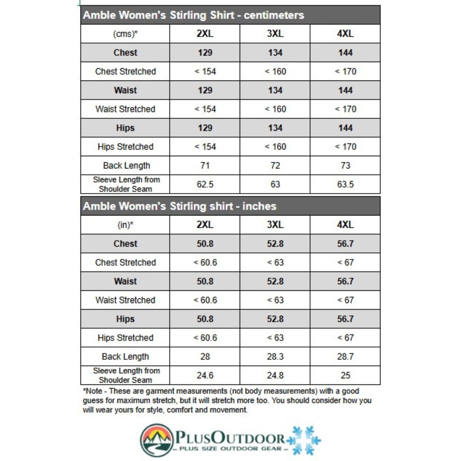 Size chart for Amble Stirling Womens Plus Size Shirt Midnight Sizes 2XL - 4XL