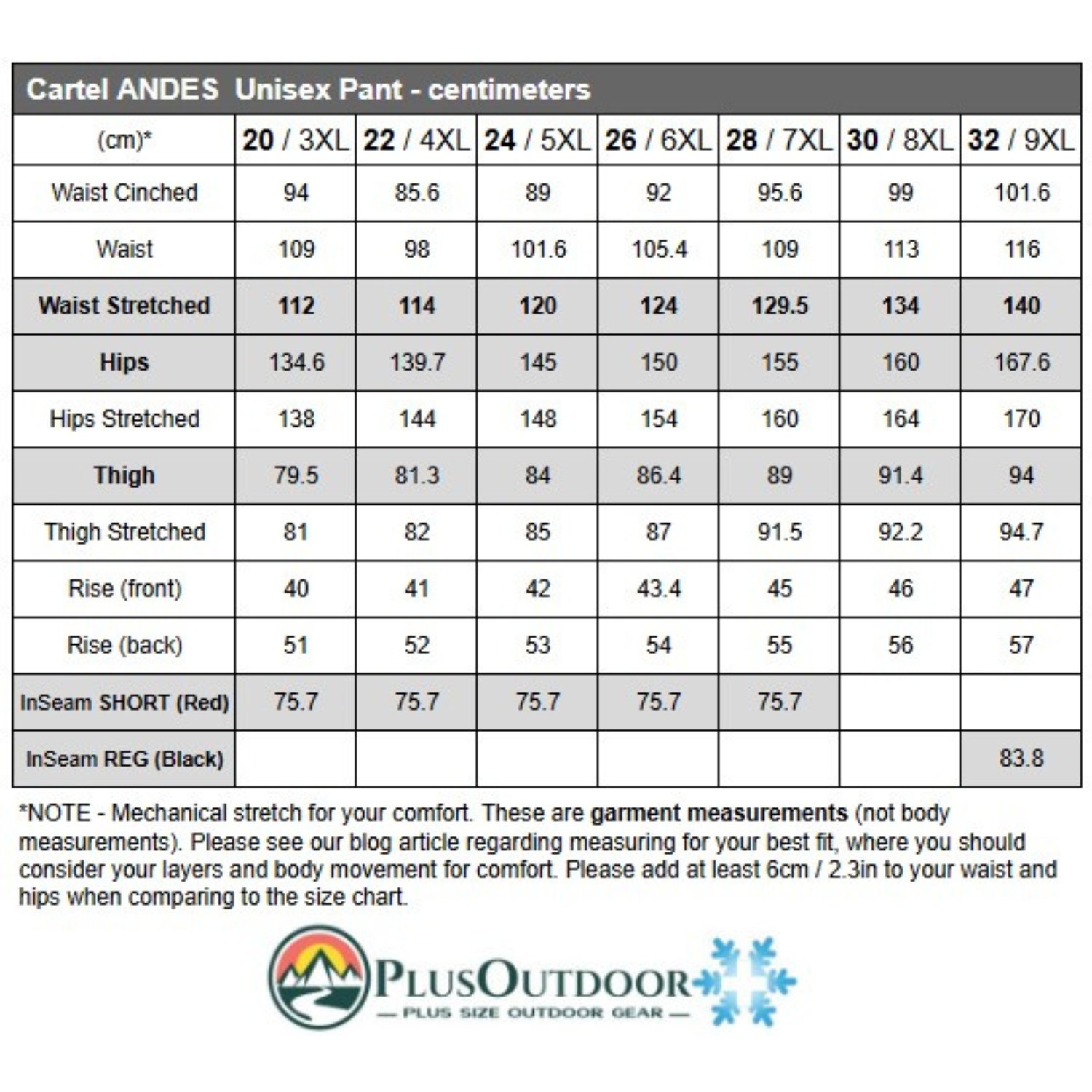 Size chart for CLEARANCE - Cartel Andes Stretch Womens Shell Ski Pants Red Size 3XL