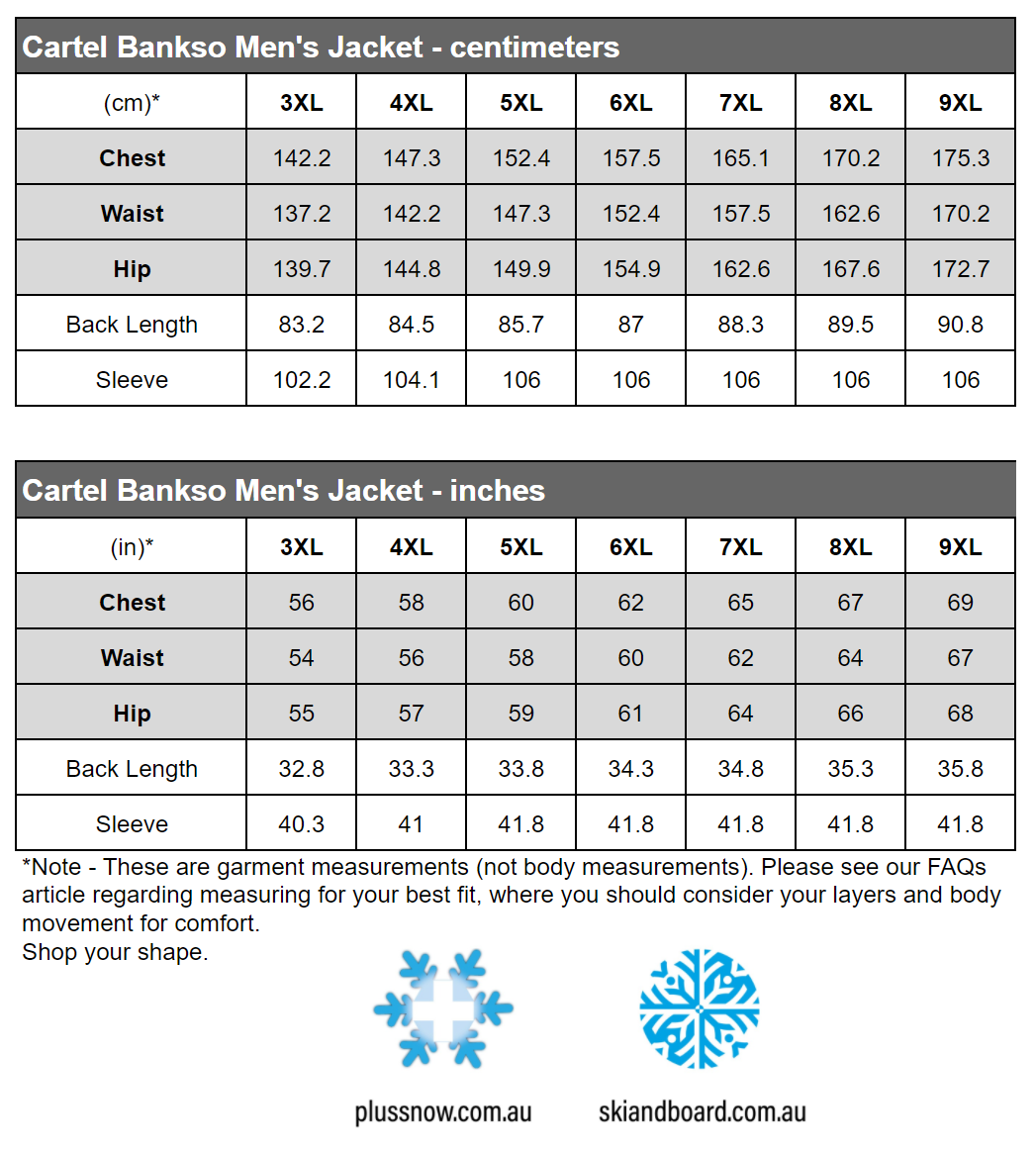 Size chart for Cartel Bankso Mens Plus Size Snow Jacket Army Sizes 7XL-9XL