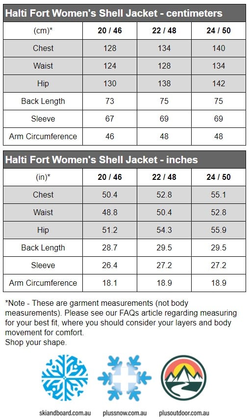 Size chart for CLEARANCE - Halti Fort Shell Womens Plus Size Rain Jacket Black Size 20