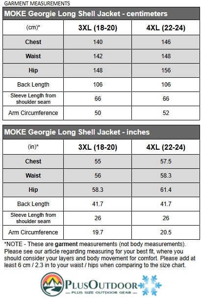 These measurements are garment (not body) measurements. Do not order based on your usual size as sizes vary greatly between styles. We recommend adding room for layering, comfort and movement.