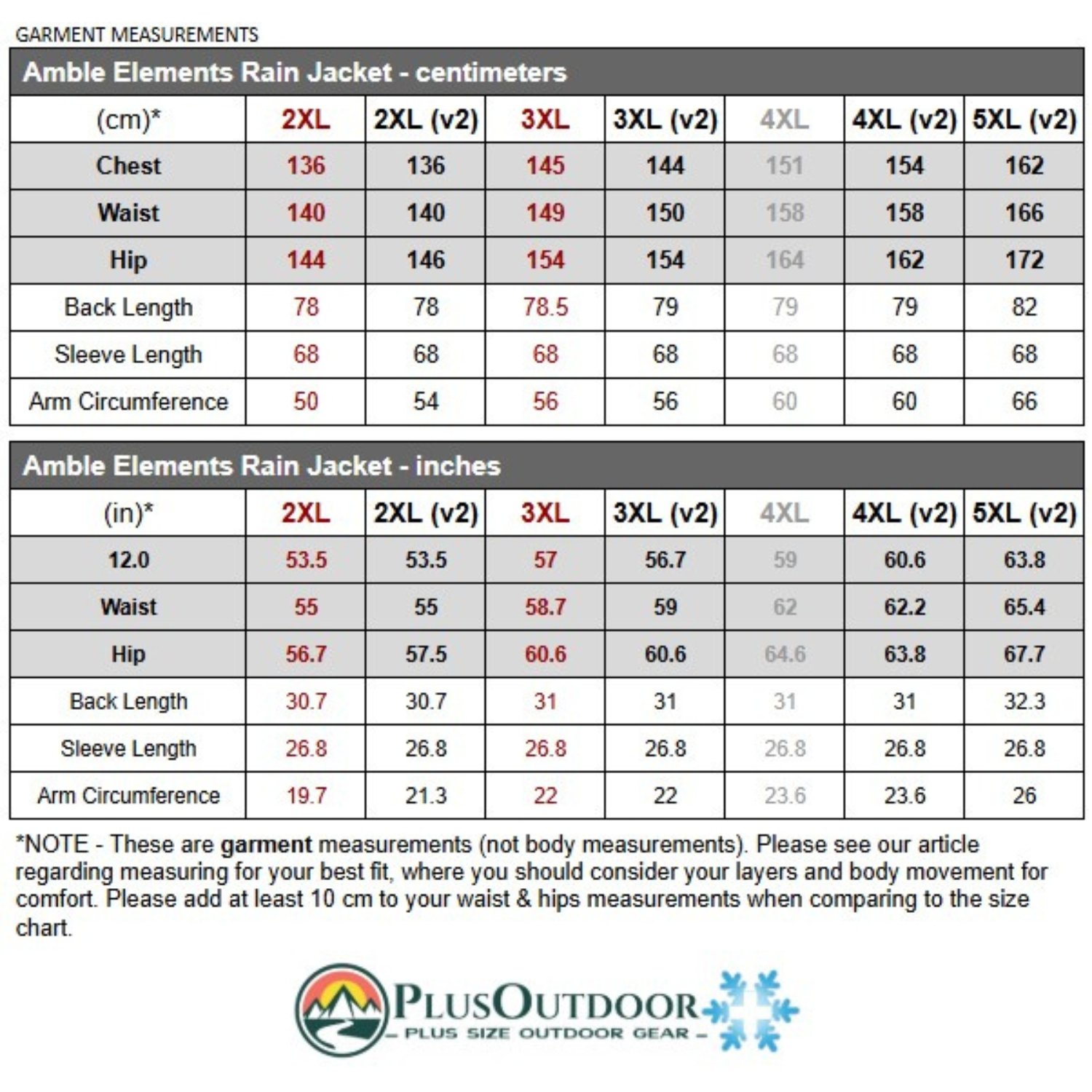Size chart for Sale - Amble Elements Womens Rain Jacket Eucalyptus Plus Size 2XL