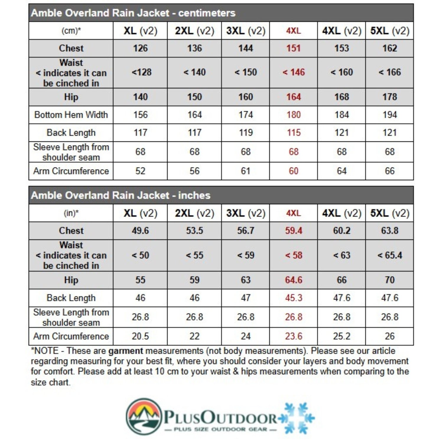 Size chart for Sale - Amble Overland Womens Rain Long Jacket Black Plus Size 4XL
