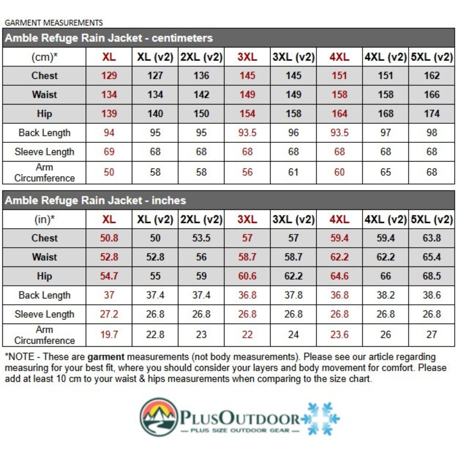 Size chart for Sale - Amble Refuge Womens Waterproof Jacket Long Black Plus Size 3XL