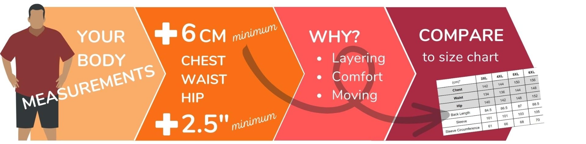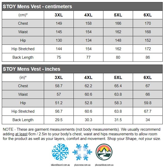 Size chart for Stoy Unisex Plus Size Puffer Vest Black Sizes 3XL - 6XL