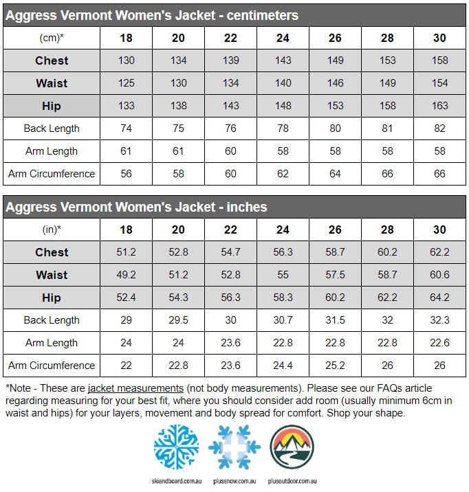 Size chart for CLEARANCE - Vermont Womens Plus Size Snow Jacket Red Size 20